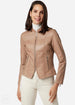 The Alenya is a refined women’s racer jacket crafted from smooth Nappa lambskin leather. Its sleek design features a band collar, clean shoulders, and sculpted seams for a flattering tailored fit. A polyester lining ensures comfortable wear, while zippered cuffs and vertical hand pockets add subtle practicality. Offered in multiple versatile colors, the Alenya is a timeless piece that transitions effortlessly from daywear to evening looks with understated sophistication.