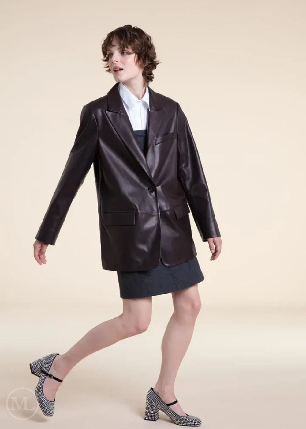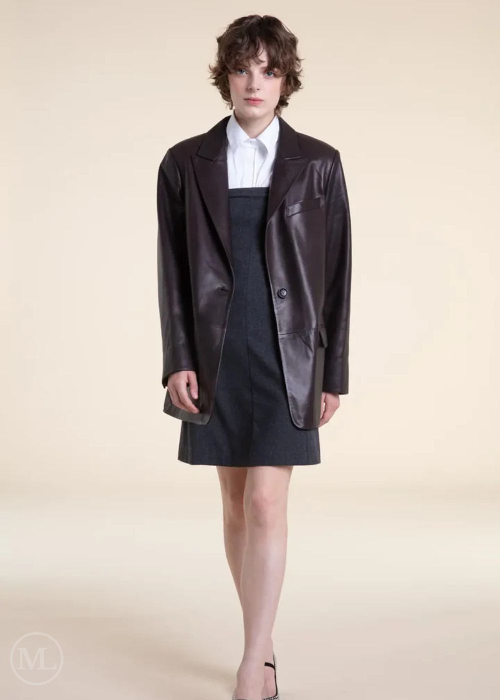 The Claudine Leather Blazer redefines effortless sophistication with its oversized silhouette and buttery-soft lambskin construction. Perfect as both outerwear and a statement layering piece, it features a single-breasted front, sharp notch lapels, and clean lines for a timeless, minimalist look. The supple leather drapes elegantly over dresses, tailored trousers, or denim, making it a versatile choice for work or weekend wear. Available in deep chocolate brown, Claudine effortlessly blends structured tailoring with relaxed elegance for the modern woman’s wardrobe.